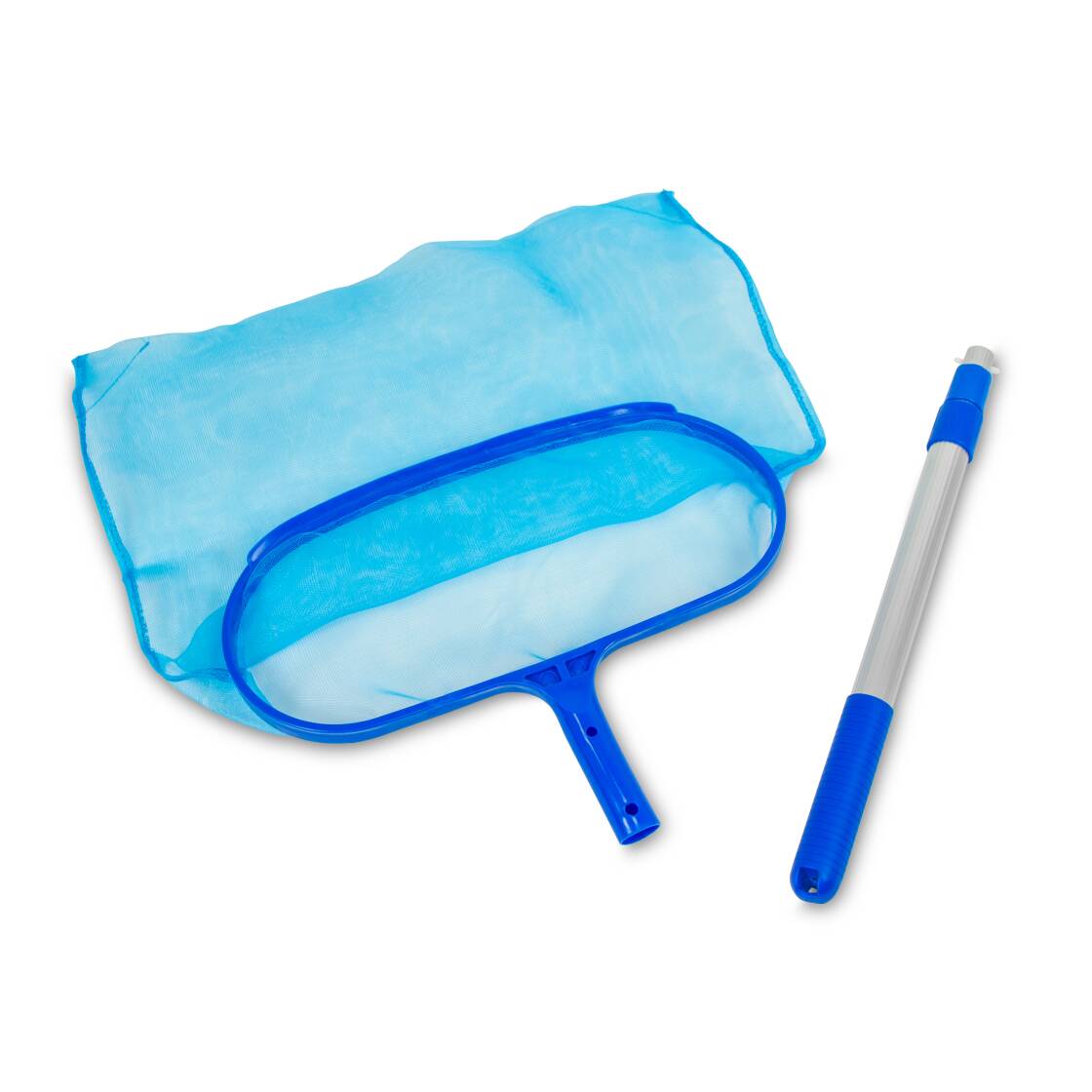 Der praktische Oberflächenkescher ermöglicht Ihnen grobe Verschmutzungen wie Blätter, Schmutz von der Wasseroberfläche zu entfernen. Auch hier ist die Reichweite mithilfe der Teleskopstange erweiterbar.